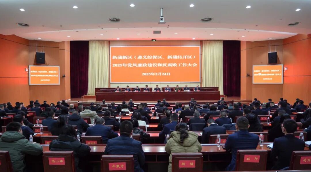 2月24日,新蒲新区(遵义综保区、新蒲经开区)2025年党风廉政建设和反腐败工作大会召开。新蒲新区(遵义综保区、新蒲经开区)党工委书记骆亚出席会议并讲话。他强调,要深入学习贯彻习近平新时代中国特色社会主义思想,全面贯彻党的二十大和二十届二中、三中全会精神,认真落实二十届中央纪委四次全会、十三届省纪委四次全会和六届市纪委五次全会精神,更加有力有效纵深推进党风廉政建设和反腐败斗争,持续净化政治生态,营造良好发展环境,为推进中国式现代化新蒲实践提供坚强保障。