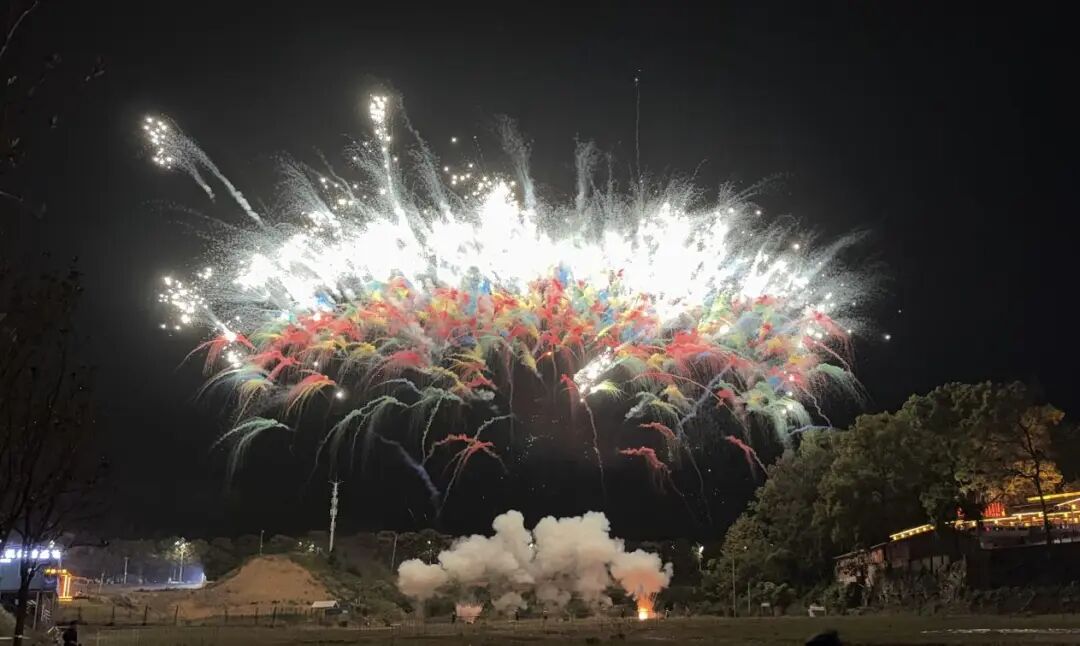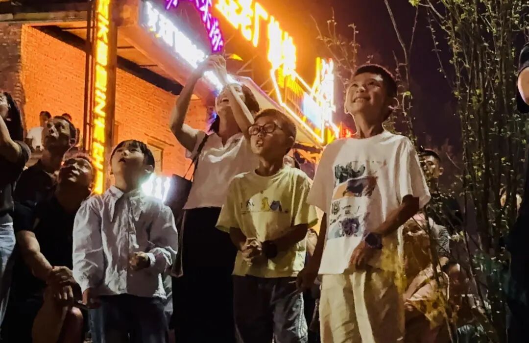 绚烂的花火倒映在人群之中,孩子们奔跑追光,情侣并肩仰望——此刻的芳华里,被无数光点镶成一幅流动的画卷。