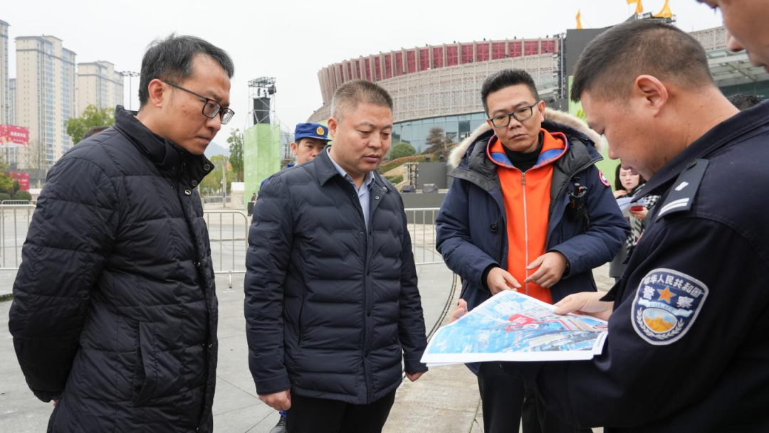 会前,骆亚一行边走边看,实地了解活动布局、人流管控、消防设施配备、应急值守、服务保障等情况。