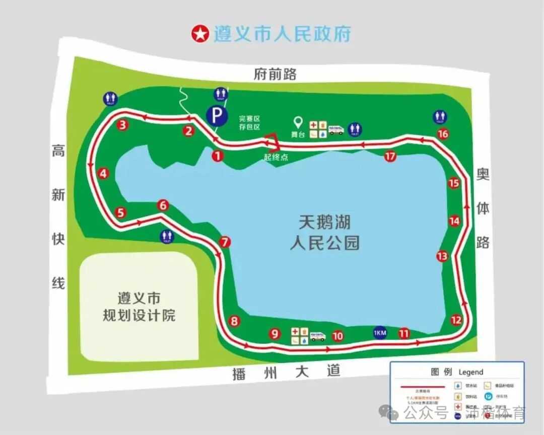起点为天鹅湖公园北门(府前路入口),参赛选手需环天鹅湖公园健身步道跑完3圈.
