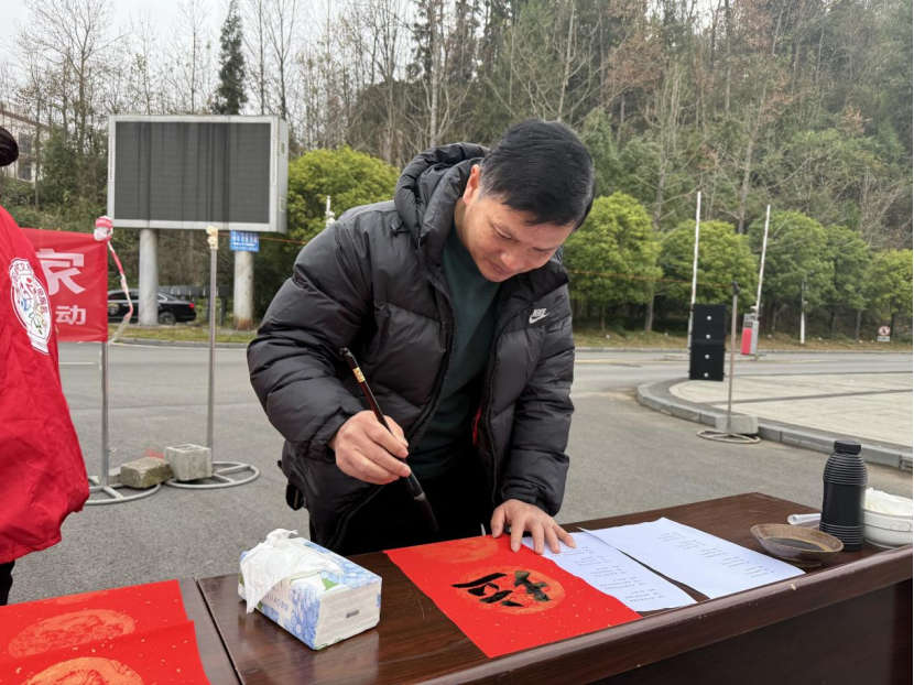 翰墨飘香中,书法家和干部群众挥毫泼墨,一副副融入文明理念的春联在晾晒区铺展开来,吸引不少村民驻足欣赏、领取。“自己写、自己用,过年贴着也更有意义。”现场群众笑着说。